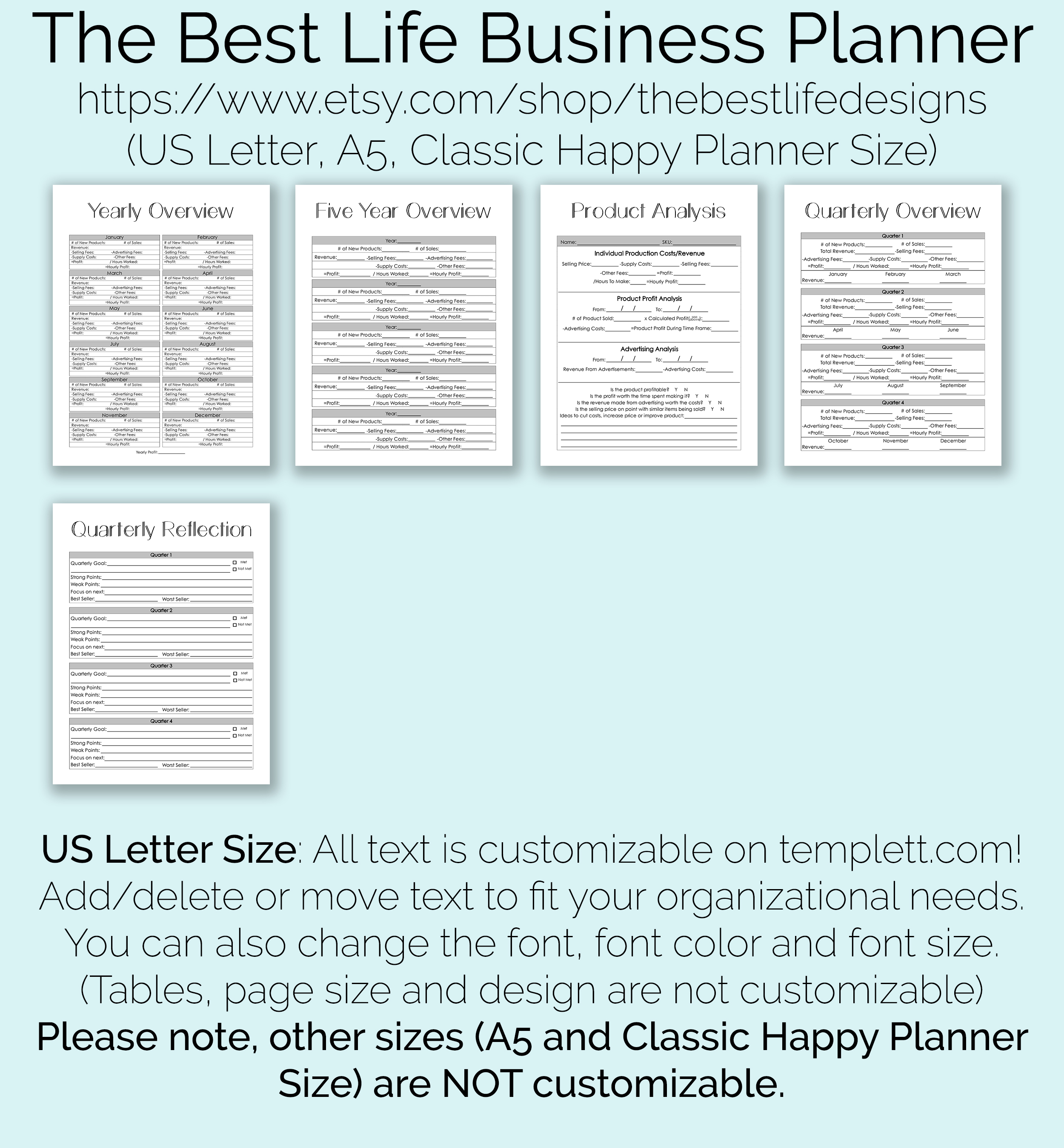 To purchase these customizable business planner printables, simply add this product to your cart and checkout. After purchasing, you will have immediate access to the file. While our prices are cheaper on our own site, we do also have an Etsy store if you’d prefer to purchase through Etsy. You can CLICK HERE to check out our Etsy shop for digital downloads.