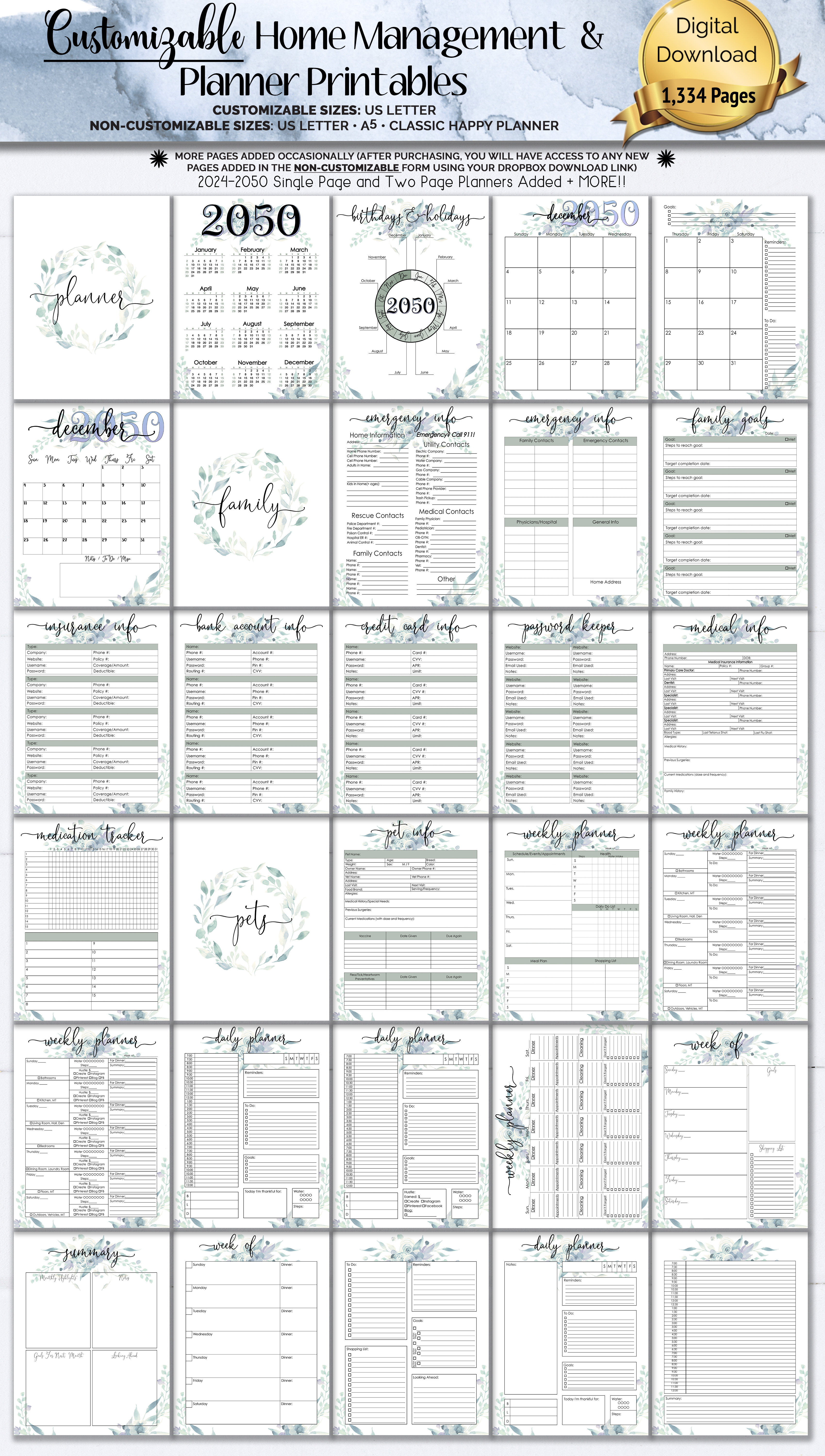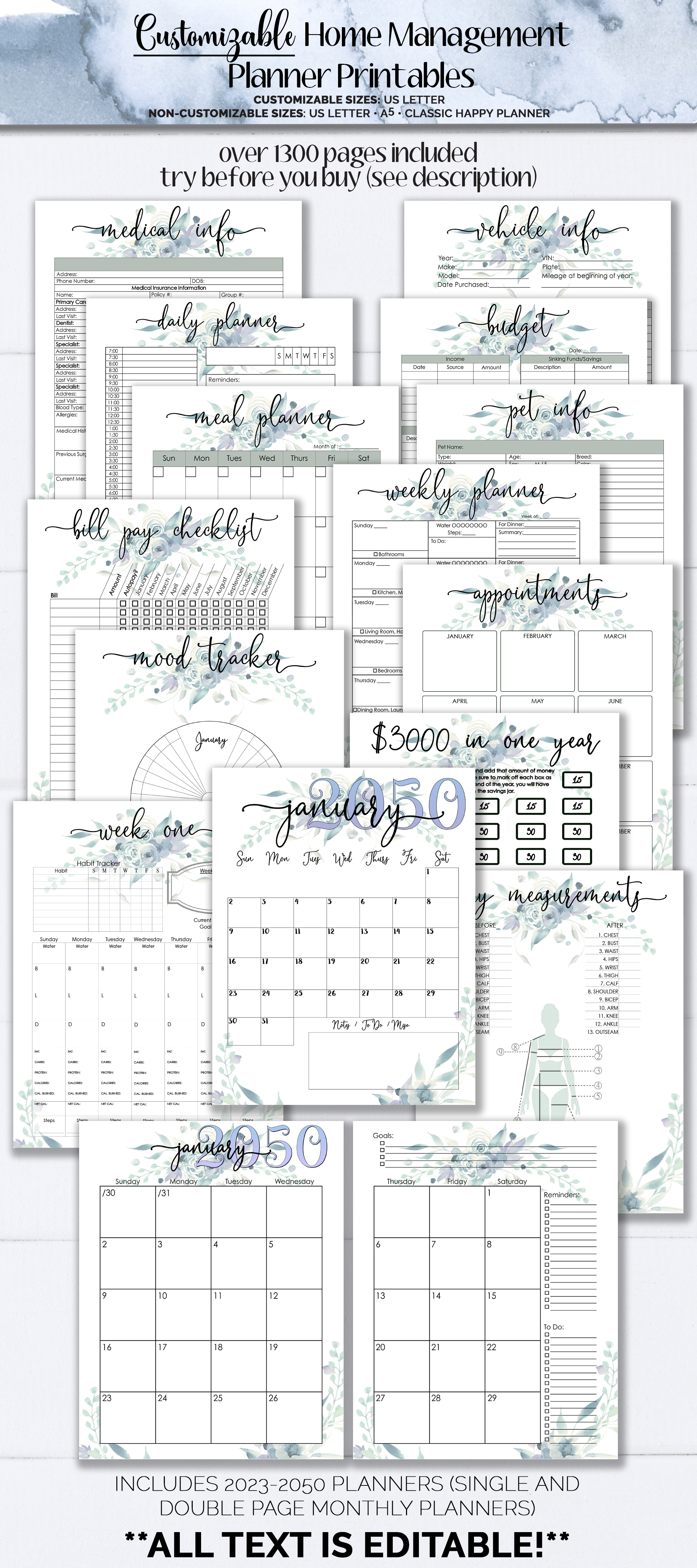These customizable home management planner printables are exactly what you need to get organized! Dated monthly calendars through 2050 included!