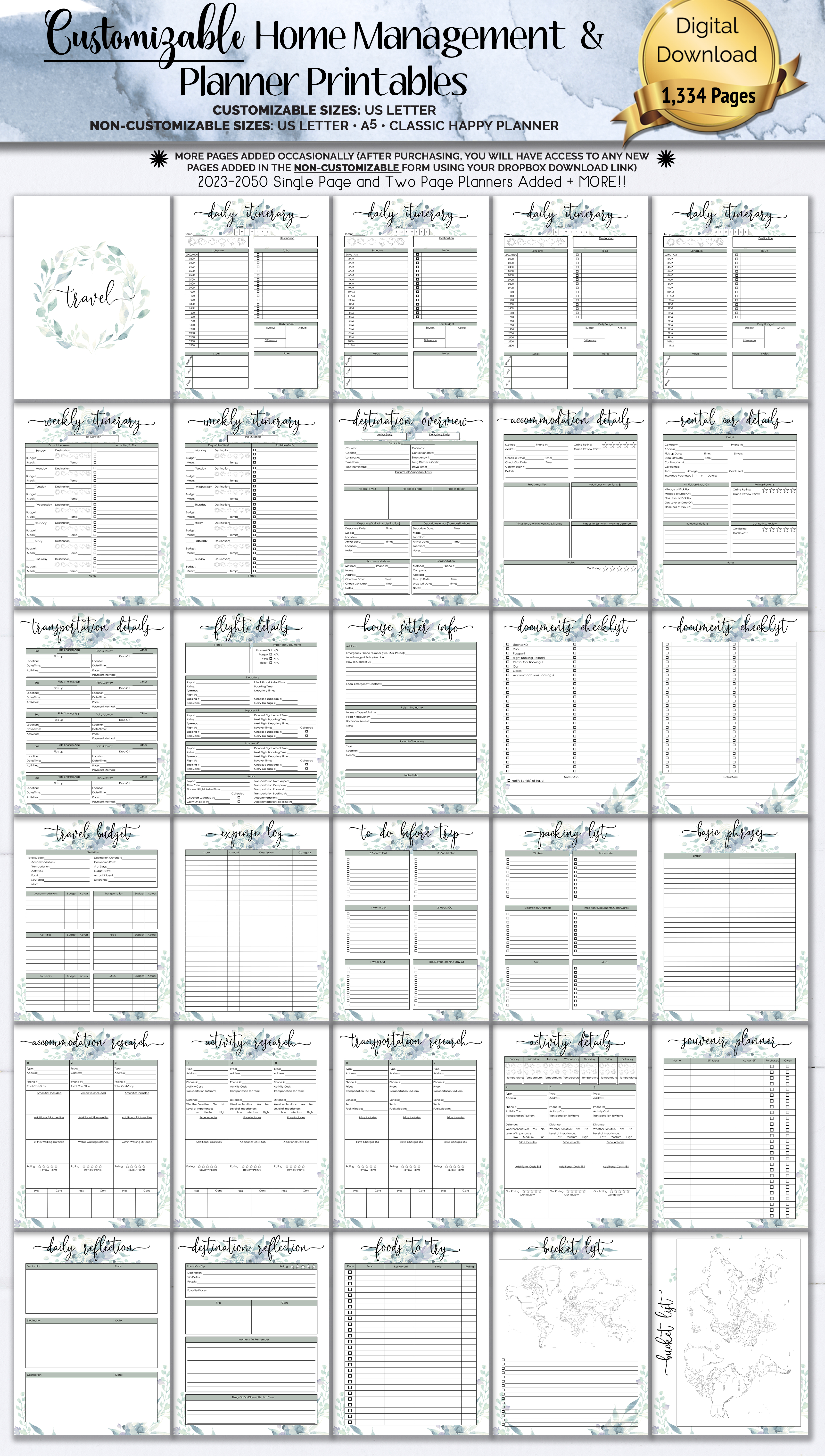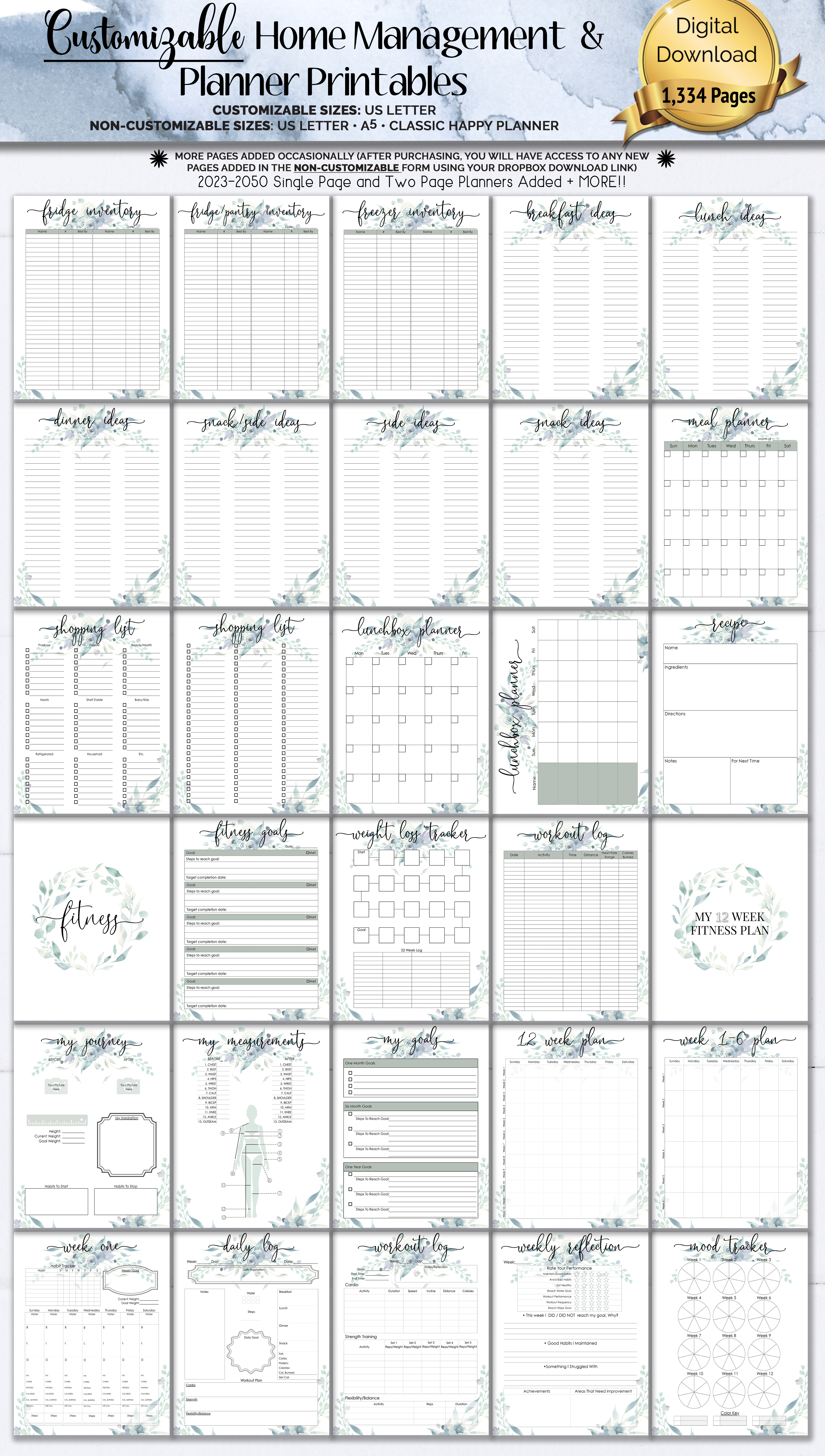 The US Letter Size is customizable if desired (The A5 and classic happy planner sizes are not customizable!). The downloadable file will include a link to the non-customizable printables. You will also then receive a separate email from Templett that will include the link to access the customizable documents. (You choose if you want to customize them or not!)