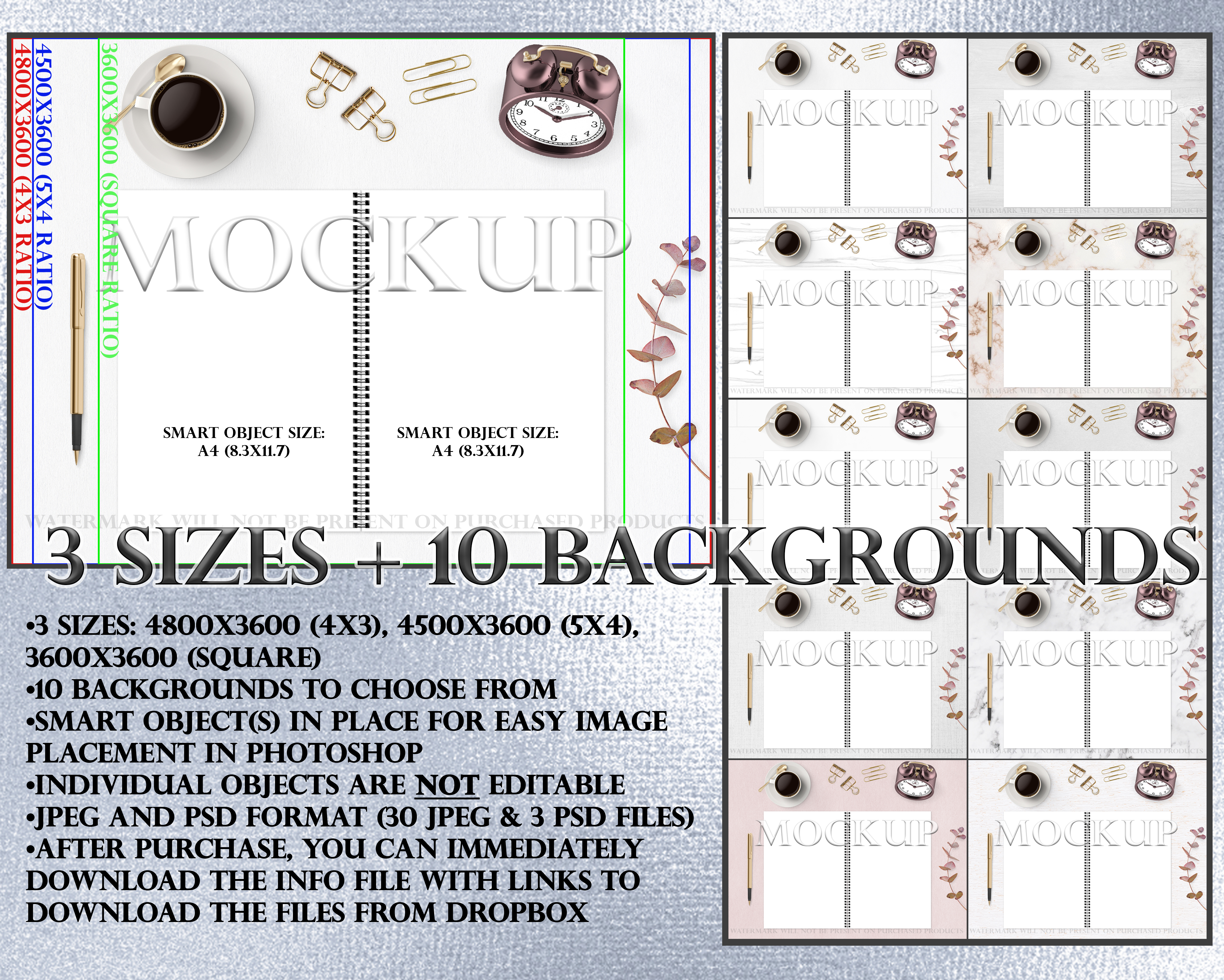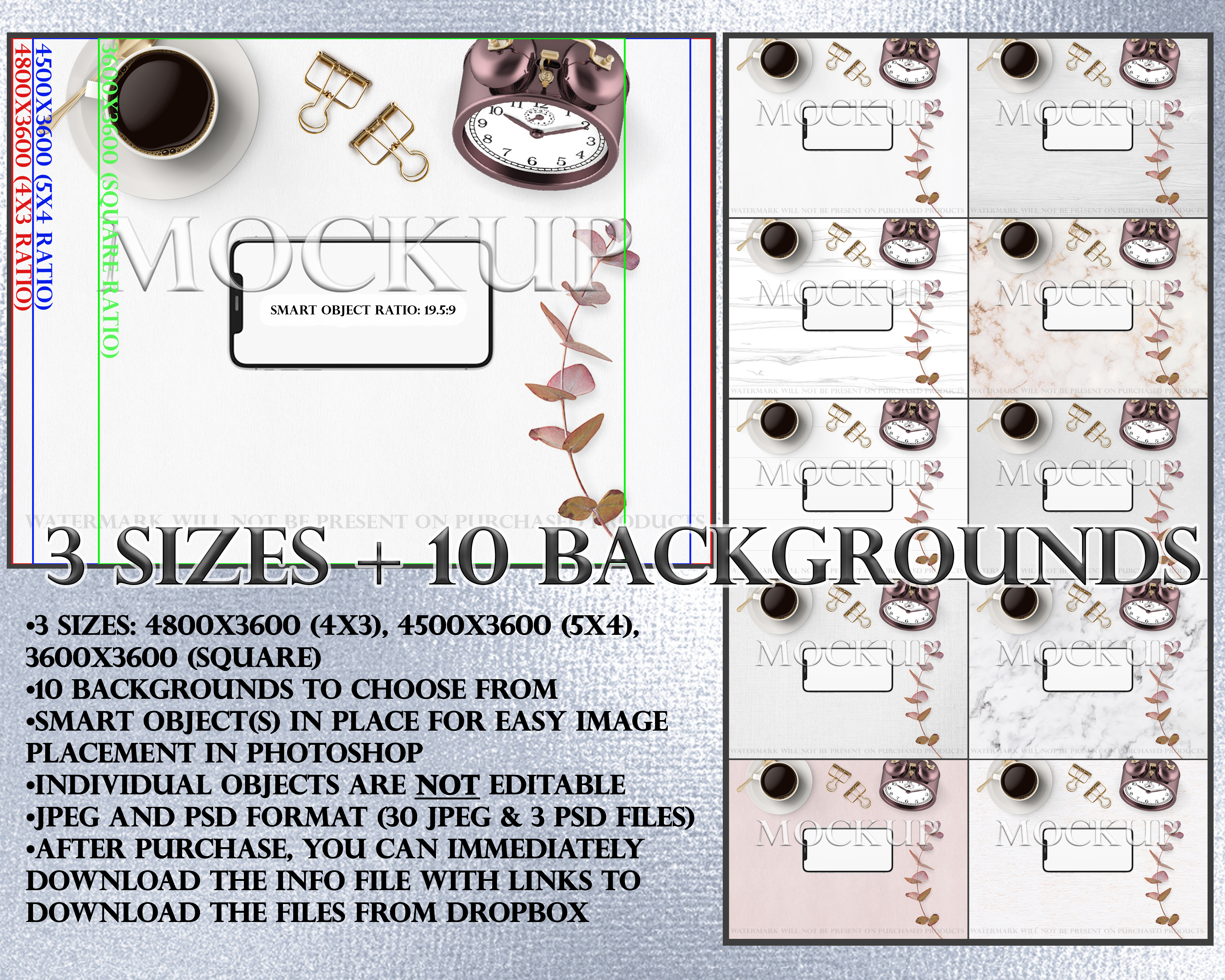 •3 Photoshop image files with smart objects for easy editing (1 for each size)