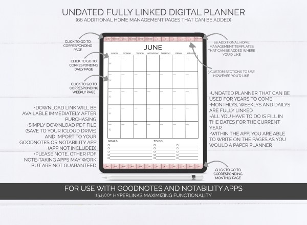 Please note, you must have a compatible app downloaded on your device to use this undated digital planner. Compatible apps are below. You can purchase these from your app store on your device.