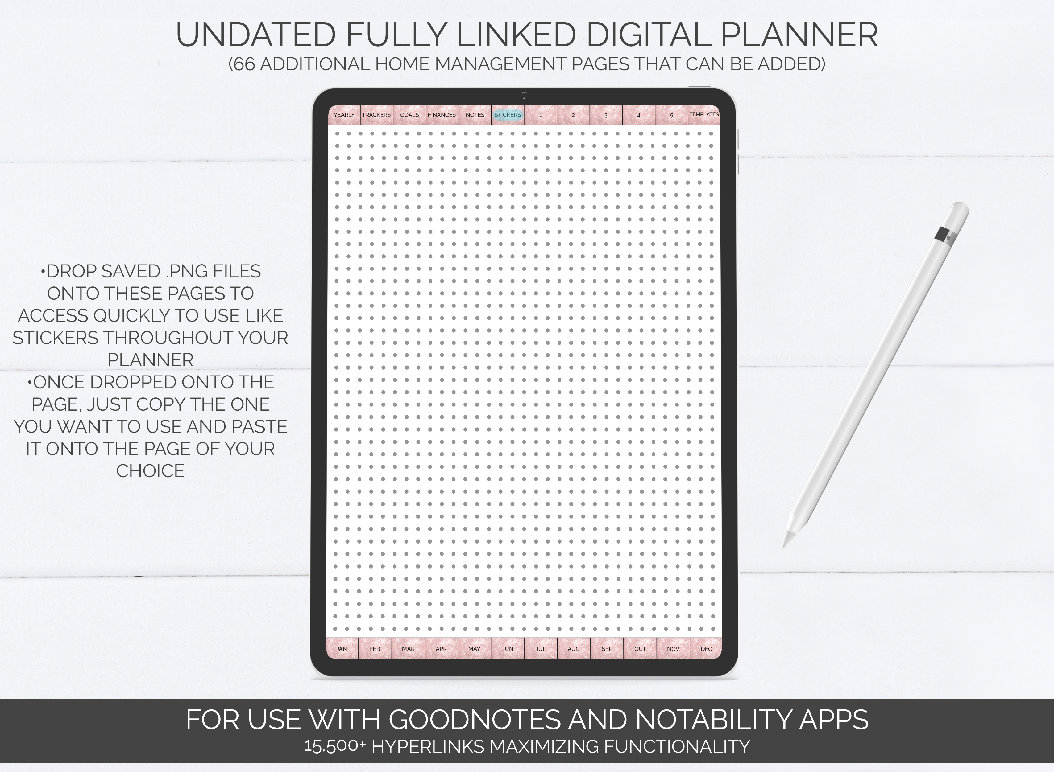 608 Pages • PDF Format • Pink UNDATED Digital Planner